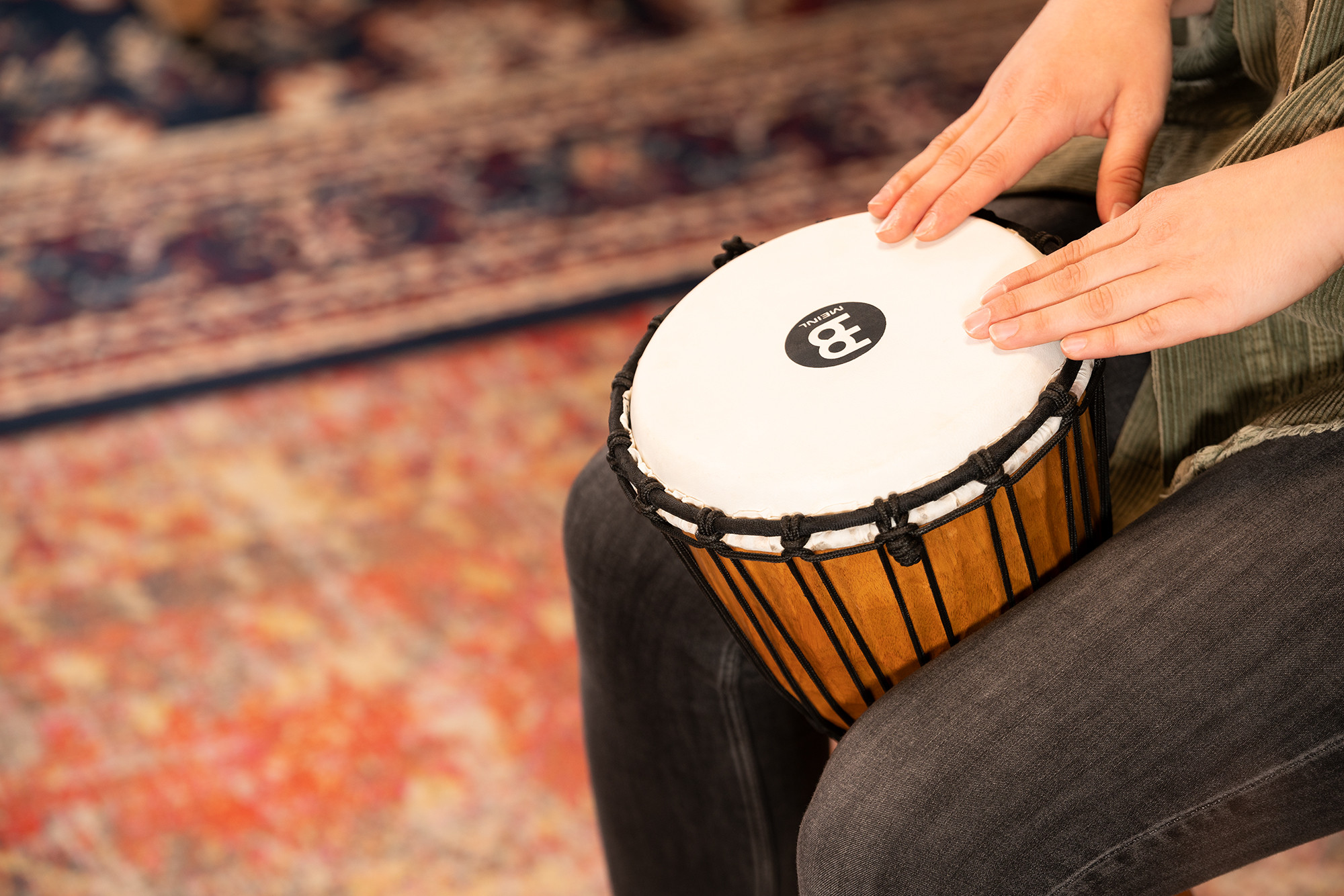 MEINL Djembe s ručne dlabaným korpusom a lanovým pletením.
